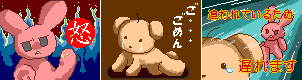 高校のとき美術の時間に作ったロウソク彫刻のキャラクター。クマとウサギは友人キャラ。
