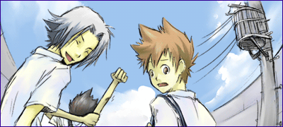 跪かせる山本と跪かせられる雲雀。